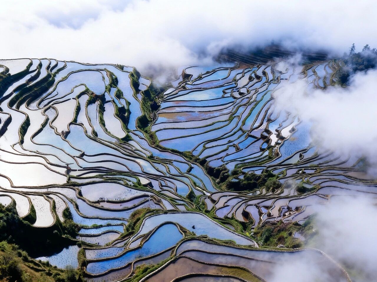 早起拍摄梯田日出云海,灌水期的梯田如镜面,配合晨雾和日出光线,是出片的绝佳时机。上午拍摄梯田线条与劳作,徒步深入梯田,寻找线条优美的局部构图;下午拍摄梯田日落;