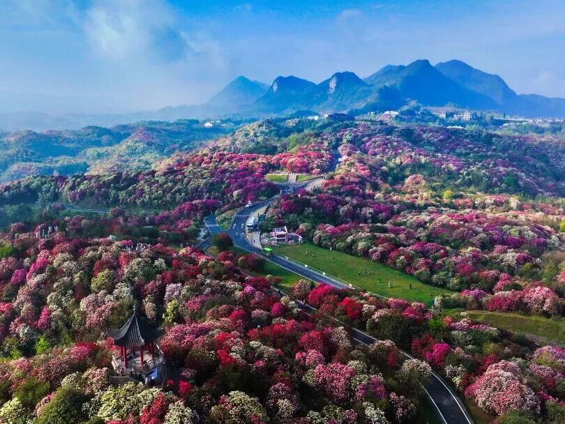 早餐后前往毕节百里杜鹃风景区,是世界最大的天然杜鹃花园,以绵延50余公里的杜鹃花海为核心景观,被誉为“地球的彩带”,拍摄落日余晖下的杜鹃山谷全景;