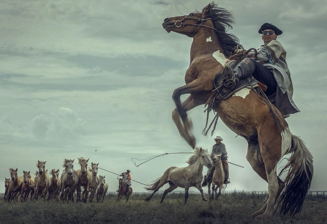 【全天马主题】上午内容拍摄圈内套马、下午拍摄犬马争锋、捡哈达、拾酒壶、马背醉酒、马上射箭、马上摔跤等;(以上内容根据天气及马场摆拍安排调整)