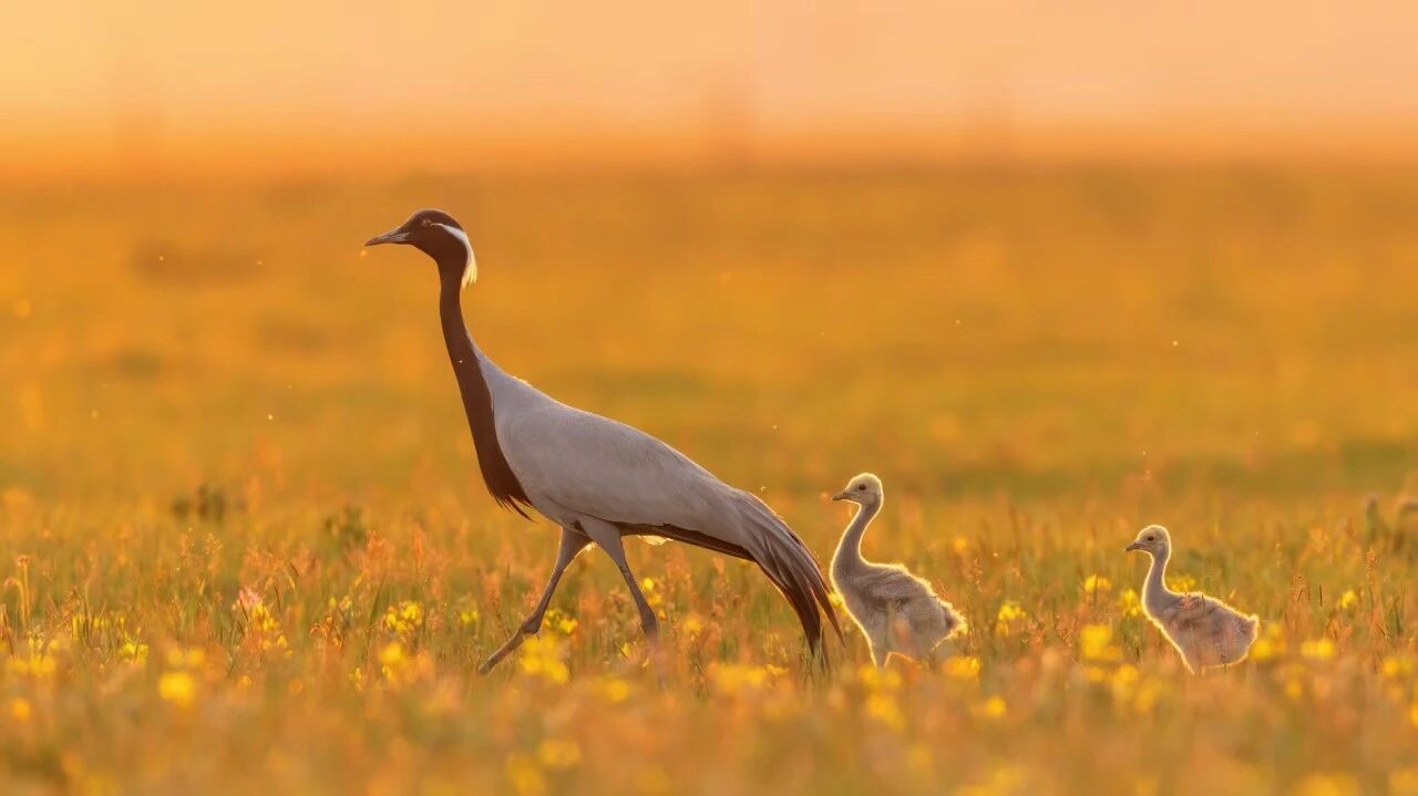 上午出发拍【黄花版蓑羽鹤育雏】,适时前往锡林格勒凤凰马场,拍摄【夕阳西下的骏马】;