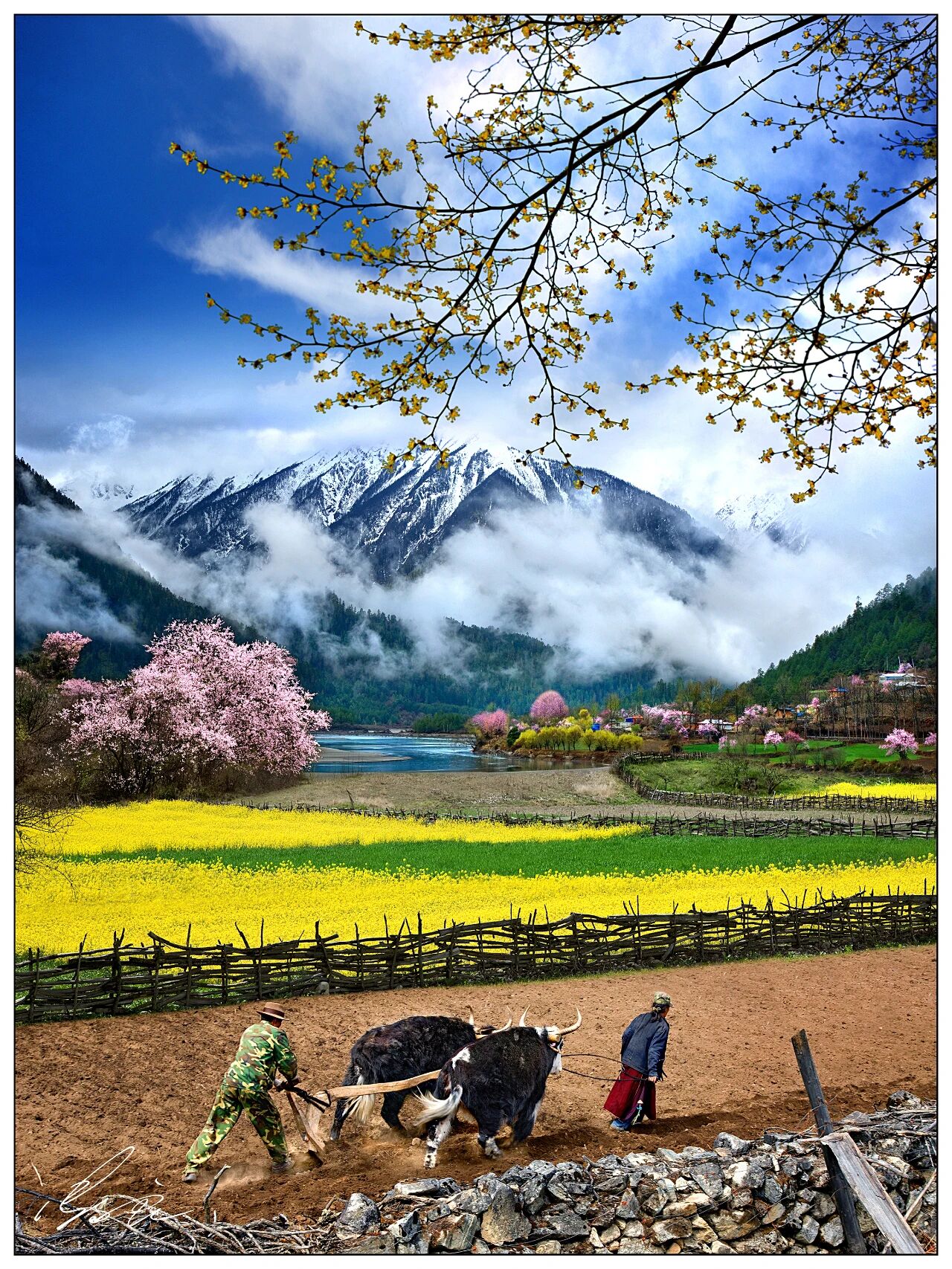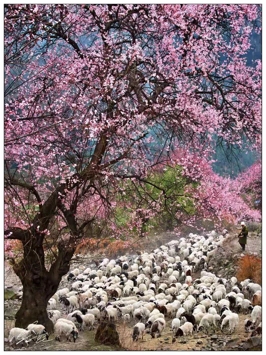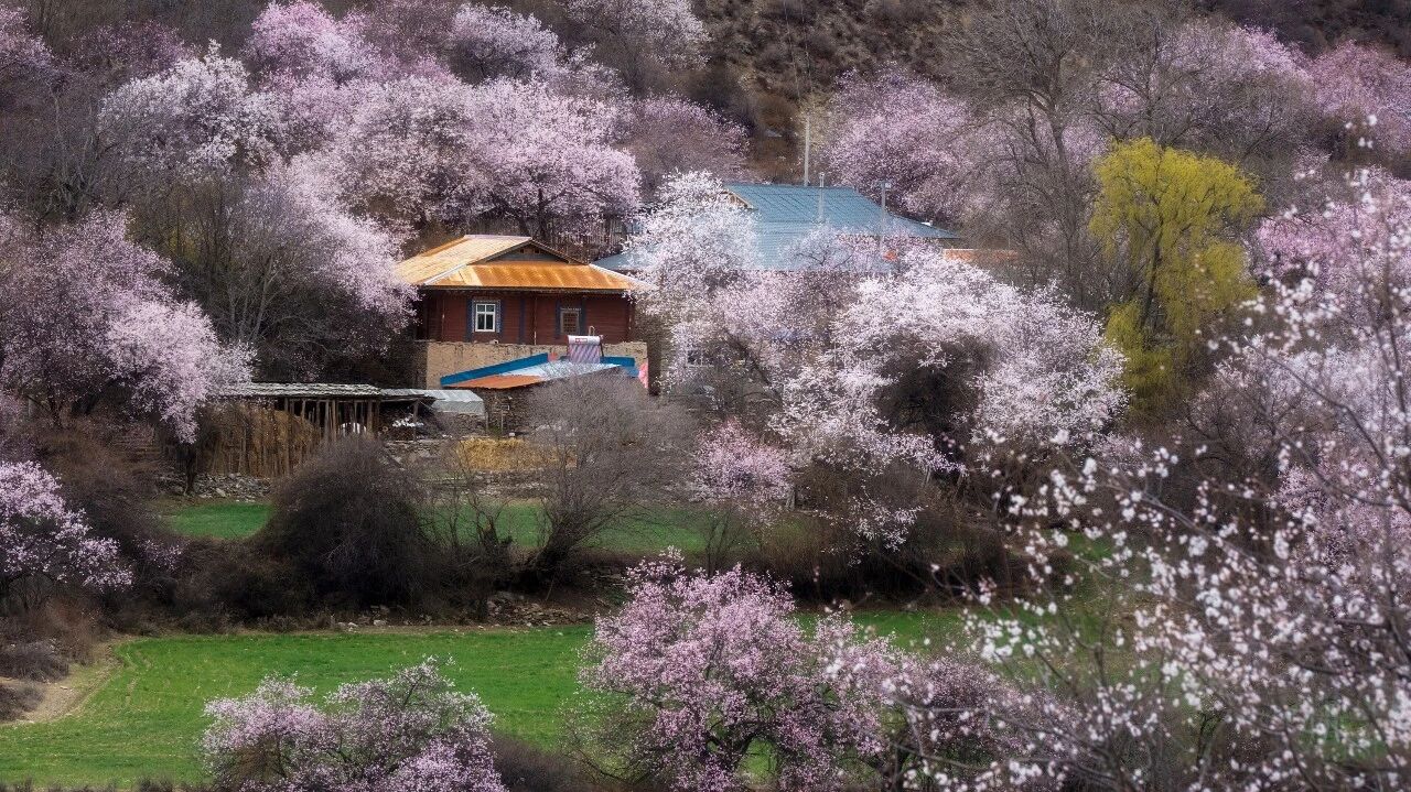 上午繼續拍攝野生桃花,尼洋河流經桃花村,與桃花林、田園人居相映成輝。後回林芝。