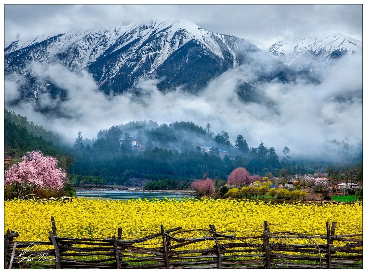 索松村全天創作, 索松村位於雅魯藏布大峽谷內,是拍攝南迦巴瓦峰和林芝桃花的最佳地方;今天拍攝多雄拉山日照金山、索松村晨曦、雅魯藏布江、雪山與桃花,南迦巴瓦峰等。